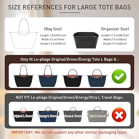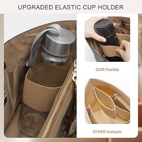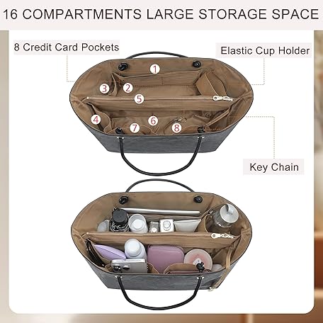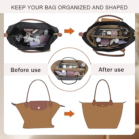 Thông tin sản phẩm Doxo Wallet Organizer Insert for Longchamp LePliage, Large, Firm Grip, Pocket Shaper with Key Leash and 16 Compartments, Upgraded Elastic Cup Holder (Black and Brown, L)