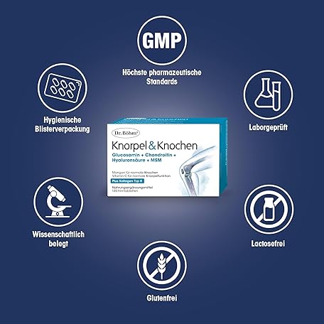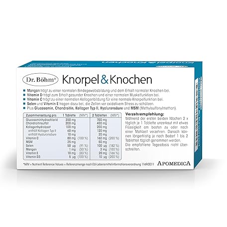 Thông tin sản phẩm Dr. Böhm Cartilage & Bones: For Support for Cartilage and Bones, Nutrient Combination with Vitamin C and D, 120 Film-Coated Tablets