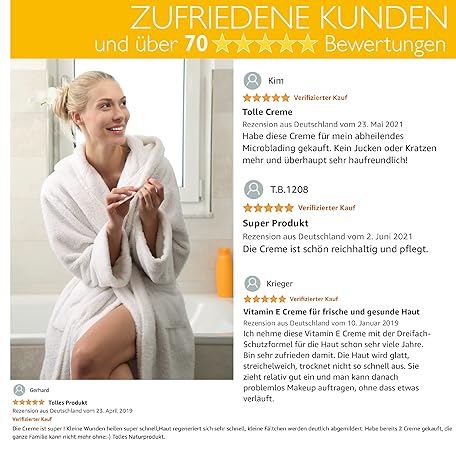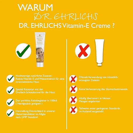Thông tin sản phẩm Dr. Ehrlichs Vitamin E Cream 100 ml – Rich Intensive Care for the Special Demands and Needs of Mature Skin – Nourishes, Smoothes and Tightens the Skin – Acid Protective Coat is Improved