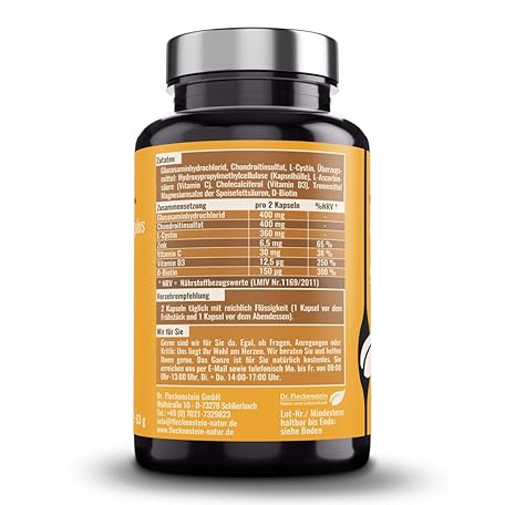 Thông tin sản phẩm Dr. Fleckenstein Arthrobel Super Plus, Chondroitin & Glucosamine Capsules Plus L-Cystine (Cysteine), Dietary Supplement with Vitamins C and D3, Zinc and Biotin.