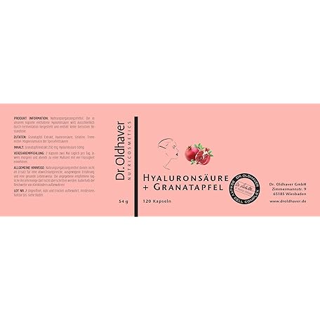 Sản phẩm Dr. Oldhaver Hyaluronic Acid and Pomegranate (120 Capsules) High-Quality Hyaluronic Acid Produced in Fermentation, Combined with Concentrated Pomegranate Extract, for Beautiful Skin đang được bán với giá ưu đãi là $35.3923 tại nước Đức.