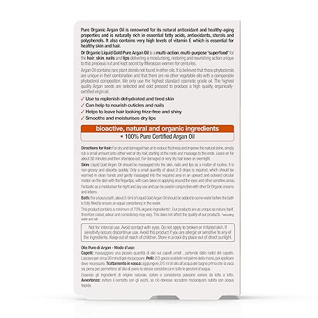 Dr. Organic Moroccan Argan Oil, 100% Pure Oil, Replenishing, for Hair, Skin & Nails, Men, Women, Natural, Vegan, Cruelty Free, Paraben and SLS Free, Organic, 50 ml