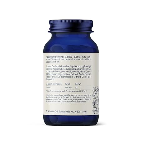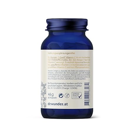 Thông tin sản phẩm Dr. Wunder® Liposomal Vitamin C 400 mg: 60 Vegan Hard Capsules | Gastric Friendly/Buffered Vitamin C in Real Liposomal Form | 400 mg Vit C | 7Quell - Camu-Camu, Rosehip, Amla & Acerola