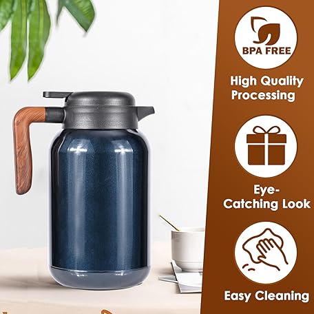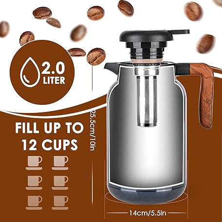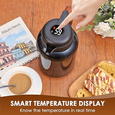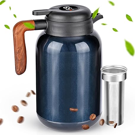 Thông tin sản phẩm Dreamhigh® Thermos Flask 2 L with Tea Strainer, Insulated Jug with Temperature Display, Well Sealed Coffee Pot (no leak, no drips), for coffee, tea and milk