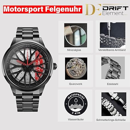 Sản phẩm DriftElement Motorsport Rim Watch Men's Sports Car Men's Watch in 3D Design of Star Spokes M8 Stainless Steel Rim Custom Designer Watch with Mineral Glass đang được bán với giá ưu đãi là $153.8971 tại nước Đức.