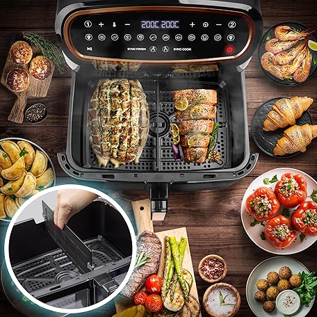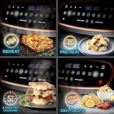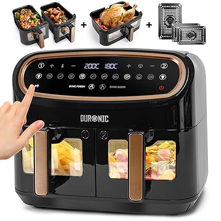 Thông tin sản phẩm Duronic AF34 BG Hot Air Fryer, XXL Double Fryer with 2 Chambers and 10 Litre Volume, Cook & Sync Finish, 2400 W Dual Zone Air Fryer, Touch Control, HLF with 10 Programmes, Cooking without Oil