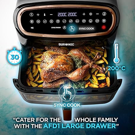 Thương hiệu Duronic là cái tên nổi tiếng được rất nhiều khách hàng trên thế giới chọn lựa. Với kiểu dáng đẹp mắt, sang trọng, sản phẩm Duronic AF34 BG Hot Air Fryer, XXL Double Fryer with 2 Chambers and 10 Litre Volume, Cook & Sync Finish, 2400 W Dual Zone Air Fryer, Touch Control, HLF with 10 Programmes, Cooking without Oil là sự lựa chọn hoàn hảo nếu bạn đang tìm mua một món cho riêng mình.