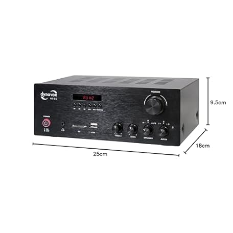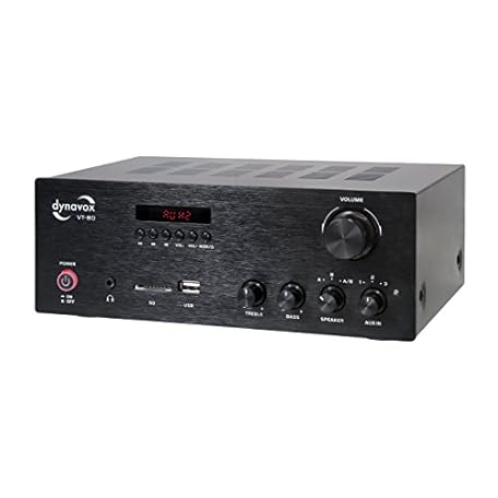 Thông tin sản phẩm Dynavox Stereo Compact Amplifier VT-80 Black, Screw-On Terminals for 4 Speakers, Remote Control Only for Digital Inputs (USB, SD Card), built-in BT Antenna