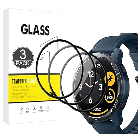 E-Hamii Screen Protector Compatible with Xiaomi Watch S1 Active, Pack of 3, 3D Curved Full Cover, Scratch-Resistant, High Definition, Screen Protector for Xiaomi Watch S1 Active