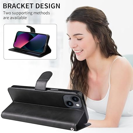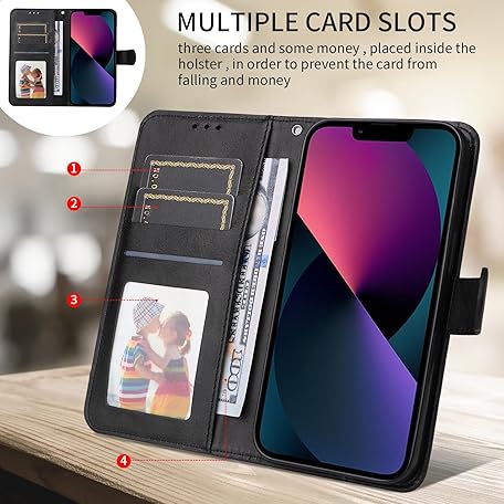 Thông tin sản phẩm E-Lush Mobile Phone Case for iPhone 13 Case Leather PU, Magnetic Flip Wallet Card Slot 360 Shockproof Protective Case for iPhone 13 Case with Stand Function, Black