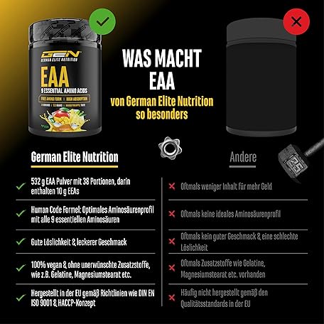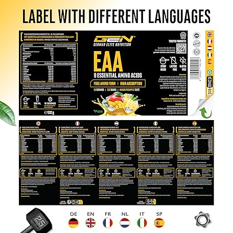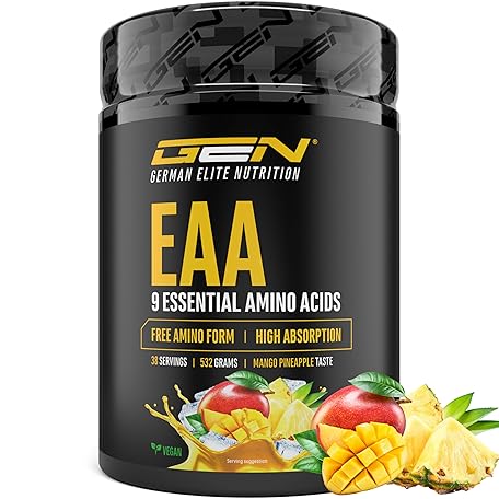 Thương hiệu GEN GERMAN ELITE NUTRITION là cái tên nổi tiếng được rất nhiều khách hàng trên thế giới chọn lựa. Với kiểu dáng đẹp mắt, sang trọng, sản phẩm EAA Powder 532 g - All 9 Essential Amino Acids Including Histidine & BCAA - Human Code Formula - Amino Workout Drink - Delicious & Top Solubility - Vegan (Mango Pineapple) là sự lựa chọn hoàn hảo nếu bạn đang tìm mua một món cho riêng mình.