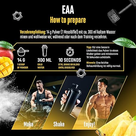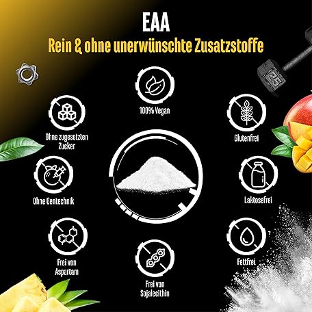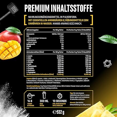 Sản phẩm EAA Powder 532 g - All 9 Essential Amino Acids Including Histidine & BCAA - Human Code Formula - Amino Workout Drink - Delicious & Top Solubility - Vegan (Mango Pineapple) đang được bán với giá ưu đãi là $38.1718 tại nước Đức.