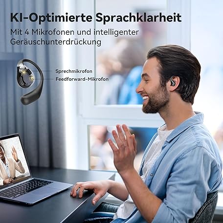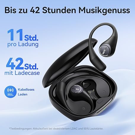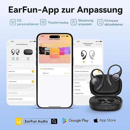 • EarFun OpenJump Bluetooth Open-Ear Kopfhörer, Hi-Res Audio, LDAC, Theatermodus, anpassbare Ohrbügel, 42 Std Akku, Kabelloses Laden, IPX7 Sportkopfhörer, Klare Anrufe mit KI, Spielmodus, Multipoint