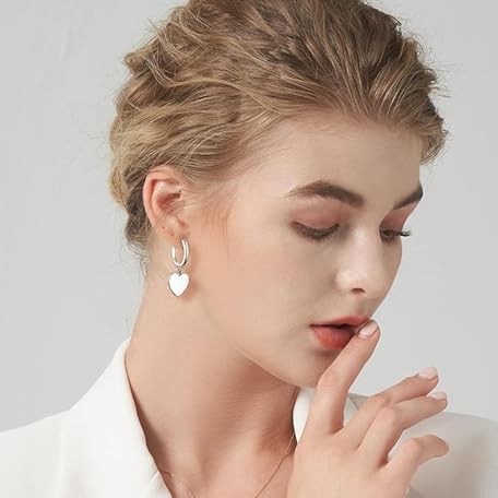 Thông tin sản phẩm Earrings Silver 925 Hanging Love Heart Earrings Silver 925 Hoop Earrings Pendant Hypoallergenic Earring Silver 925 Hoop Earrings Small Earrings Hoop Earrings with Pendant for Women Girls, Sterling