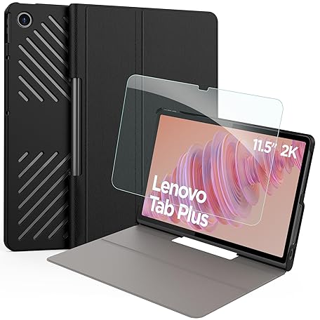 EasyAcc Case for Lenovo Tab Plus (TB351FU) 11.5 Inch 2024 with Screen Protector - Ultra Thin with Stand Function Slim PU Leather Smart Protective Case Black