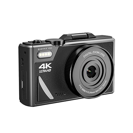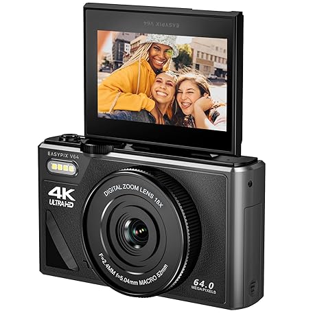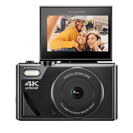 Sản phẩm Easypix V64 Flip, Digital Camera with Flip Screen, Hinged 3.0 Inch Display, Resolution up to 64 MP, 18x Digital Zoom, WiFi, Perfect for Vlogger and Selfie Shooting đang được bán với giá ưu đãi là $115.54 tại nước Đức.