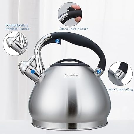 Sản phẩm Easyworkz Kettle Induction Whistling Kettle Made of Stainless Steel, 3.0 L Tea Kettle for All Hobs, Whistling Kettle with Heat Resistant and Non-Slip Handle, Kettle for Tea Coffee đang được bán với giá ưu đãi là $40.4935 tại nước Đức.