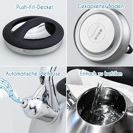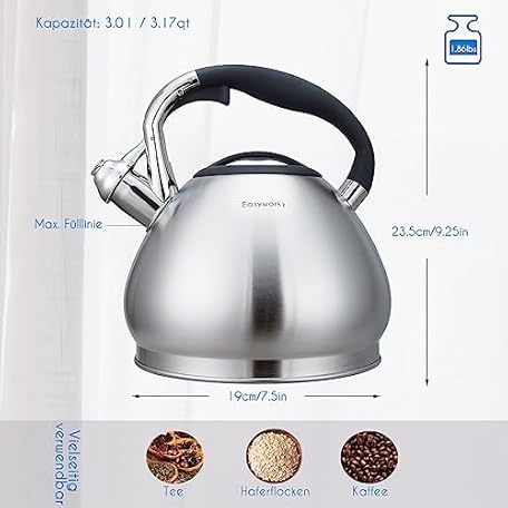 Thông tin sản phẩm Easyworkz Kettle Induction Whistling Kettle Made of Stainless Steel, 3.0 L Tea Kettle for All Hobs, Whistling Kettle with Heat Resistant and Non-Slip Handle, Kettle for Tea Coffee