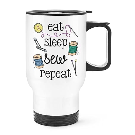 Eat Sleep Sew Repeat Reisebecher mit Henkel