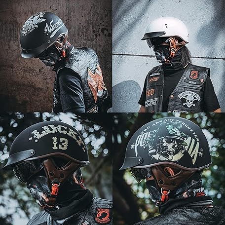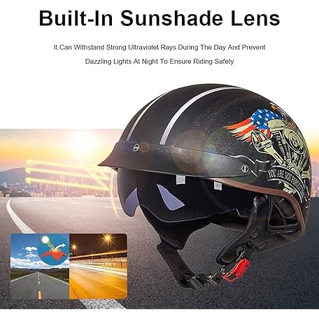 Thông tin sản phẩm EBAYIN Half Shell Helmet with ECE, Retro Jet Helmet, Chopper Helmet, Retro Motorcycle Helmet, Half Helmet, Scooter Helmet, Moped Helmet with Sun Visor and Removable Breathable Lining, H-L=(59 - 60 cm)
