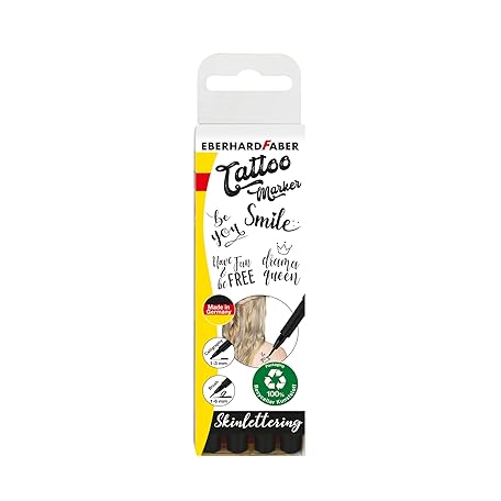 Sản phẩm EBERHARD FABER 559506 Tattoo Pen Set Skinlettering, 4 Pens in Plastic Case đang được bán với giá ưu đãi là $11.1834 tại nước Đức.
