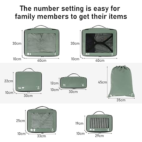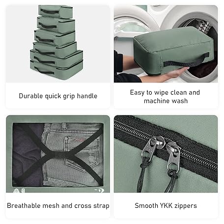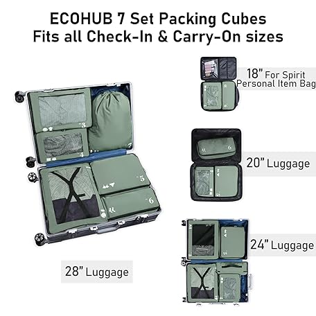 Thông tin sản phẩm ECOHUB Packing Cubes for Suitcases, 7 Pack Travel Organizer Packing Bags Recycled PET Eco-Friendly Travel Accessories Shoe Bags for Travel Storage Bag Luggage Organizer Travel Bag Green