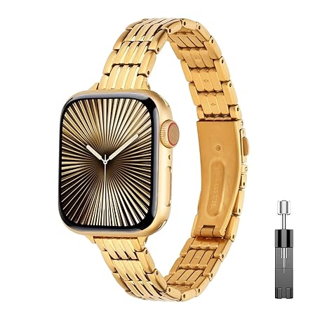 Edelstahl-Metallarmband, kompatibel mit Apple Watch-Armband für Damen (Gold, 42 mm (Serie 10) und 38/40/41 mm