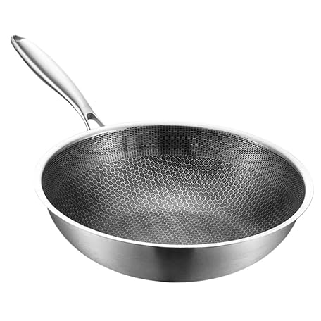 Edelstahl Wok Pfanne Honigwaben Struktur Antihaft Induktionsgeeignet Schnelle Wärmeleitung Vielseitig für Elektroherd Haushalt