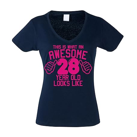 Edward Sinclair Awesome 28 Year Old Looks Like Navy T-Shirt mit V-Ausschnitt Gr. One Size, Marineblau und Hot Pink Print