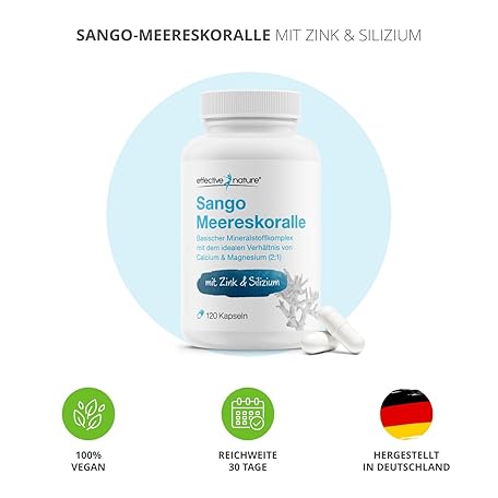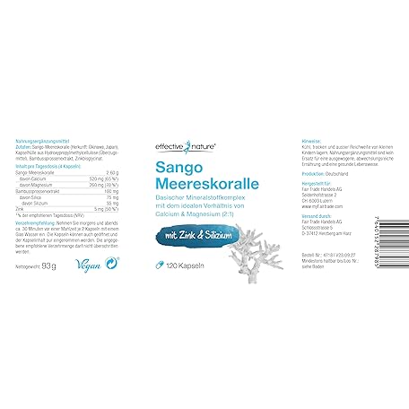 Sản phẩm effective nature - Sango sea coral + zinc and silicon - 120 vegan capsules - with calcium and magnesium in the ideal ratio - high dose and without additives đang được bán với giá ưu đãi là $31.9479 tại nước Đức.