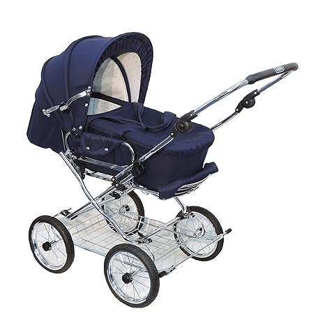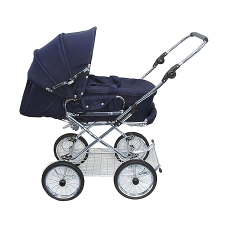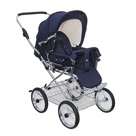 Thông tin sản phẩm Eichhorn Combination Pram with Leather Strap Frame, Convertible to Sports Pram, Includes Slider Height Adjustment and Fixed Carry Bag (LuxVariant), Fabric Navy Blue, ECCO Wheel