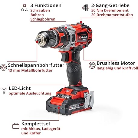 Thương hiệu Einhell là cái tên nổi tiếng được rất nhiều khách hàng trên thế giới chọn lựa. Với kiểu dáng đẹp mắt, sang trọng, sản phẩm Einhell Cordless Impact Screwdriver TE-CD 18/50 Li-i BL Power X-Change (Li-Ion, 18 V)  là sự lựa chọn hoàn hảo nếu bạn đang tìm mua một món  cho riêng mình.