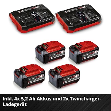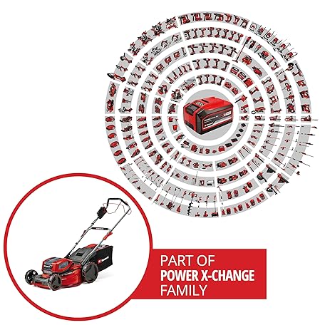 Thông tin sản phẩm Einhell Cordless Lawnmower GP-CM 36/52 S Li BL Kit Power X-Change (36 V, 52 cm Cutting Width, up to 1200 m², Brushless, 65 L Collection Basket, Wheel Drive, Includes 4 x 5.2 Ah + 2 x Twincharger)