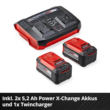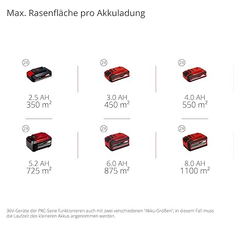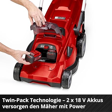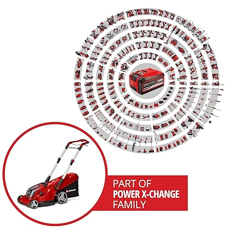 Thông tin sản phẩm Einhell Rasarro 36/42 Kit Power X-Change Cordless Lawnmower (36 V, 42 cm Cutting Width, up to 725 m², Brushless, 50 L Collection Basket, Mulching Function, Includes 2 x 5.2 Ah + 1 x Twincharger)