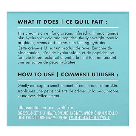 Thông tin sản phẩm e.l.f. SKIN Holy Hydration! Face Cream, Fragrance-Free, Moisturising Cream for Nourishing & Plumping Skin, Vegan & Cruelty Free, 50 g