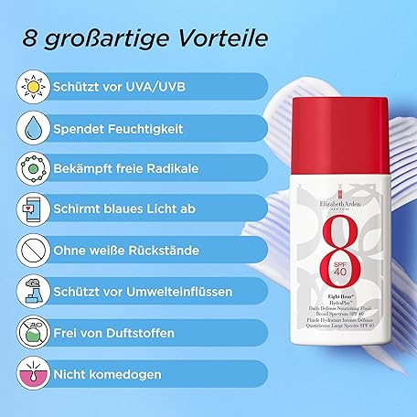 Sản phẩm Elizabeth Arden - Eight Hour HydraPlay, Intensive Moisturising Fluid, Daily Protection, Broadband SPF 40, Sun Protection, UVA/UVB, Vegan Antioxidants, Non-Comedogenic, 50 ml đang được bán với giá ưu đãi là $35.1634 tại nước Đức.