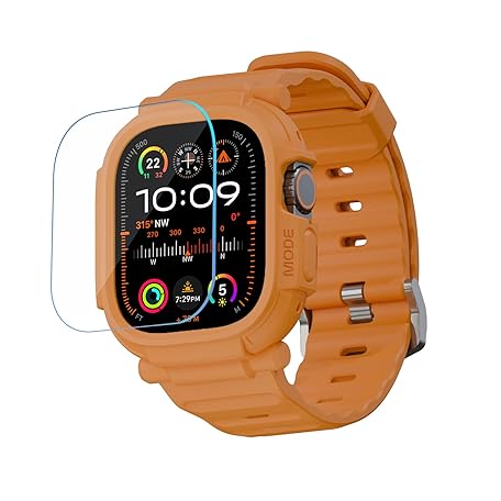 elkson Hergestellt für Apple Watch Ultra 2 1, 49 mm, Displayschutzfolie aus gehärtetem Glas, Quattro Pro Serie, robust für iWatch-Stoßfängerband, langlebige Schutzhülle in Militärqualität, stoßfest,