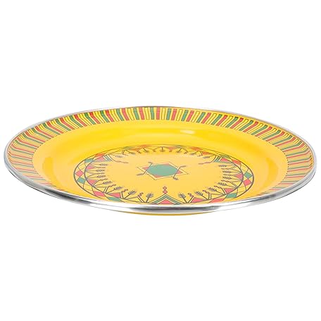 Emaille Servierplatte Gelb mit Streifen Vintage Design Glatte Oberfläche Langlebig und Lebensmittelecht für Obst Snacks Desserts Partys und Chinesische Küche