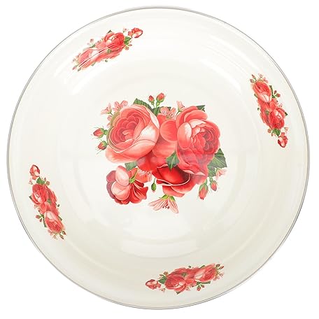 Emaille Servierplatte mit Dickem Porzellan Multifunktionales Party tablett für Obst Snacks und Desserts Chinesisches Design mit Frischem Muster Langlebig und Leicht zu Reinigen