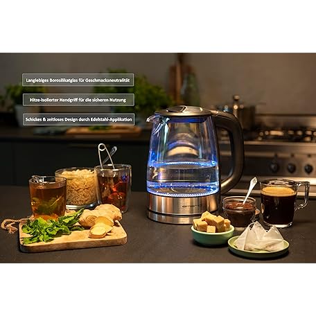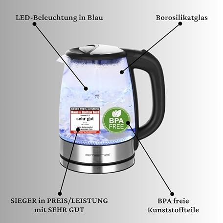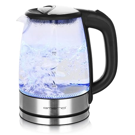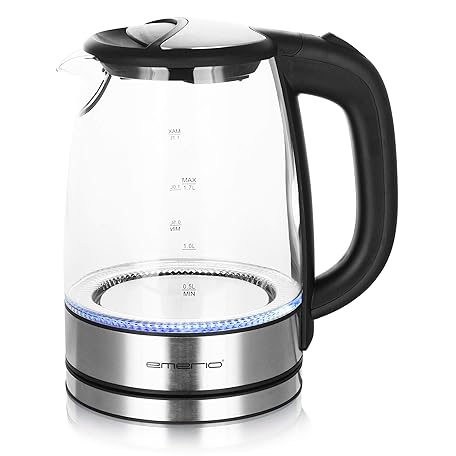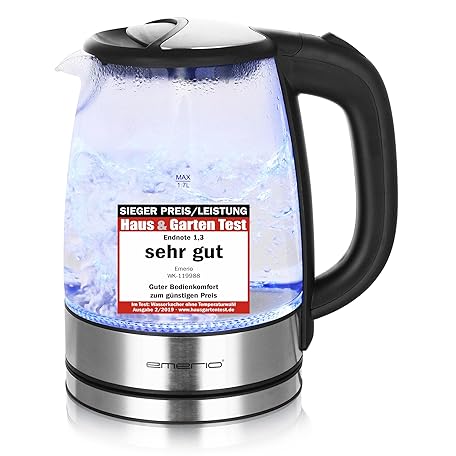 Sản phẩm Emerio WK-119988 Glass Kettle, 1.7 Litre, 2200 Watt, LED Interior Lighting, 360 ° Base, Silver đang được bán với giá ưu đãi là $25.4297 tại nước Đức.