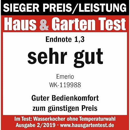 Thương hiệu Emerio là cái tên nổi tiếng được rất nhiều khách hàng trên thế giới chọn lựa. Với kiểu dáng đẹp mắt, sang trọng, sản phẩm Emerio WK-119988 Glass Kettle, 1.7 Litre, 2200 Watt, LED Interior Lighting, 360 ° Base, Silver là sự lựa chọn hoàn hảo nếu bạn đang tìm mua một món cho riêng mình.