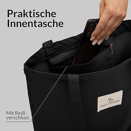 Thông tin sản phẩm Emma Jonasson Jute Bag with Zip and Inner Pocket, Stylish Shopper for Women, Shopping Bag with Long Handle, Perfect Bag as Tote Bag, Fabric Bag