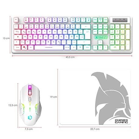 Sản phẩm EMPIRE GAMING - Armor RF800 Wireless Rechargeable Gaming Keyboard and Mouse Set QWERTZ (German Layout) - Keyboard 2.4GHz RGB - Mouse 4800 DPI with Mouse Pad - PC PS4 PS5 Xbox One/Series Mac - White đang được bán với giá ưu đãi là $55.8625 tại nước Đức.