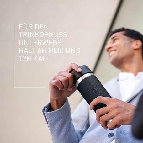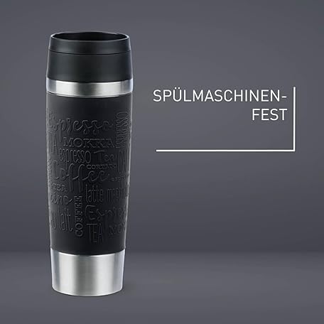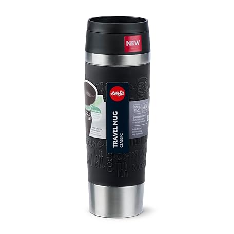 Thông tin sản phẩm Emsa N20220 Travel Mug Classic Isolierbecher 0,5 Liter, neuer Komfort-Schraubverschluss, Edelstahl, 6h heiß und 12h kühl, 100% dicht, spülmaschinenfest, 360°-Trinköffnung, Schwarz