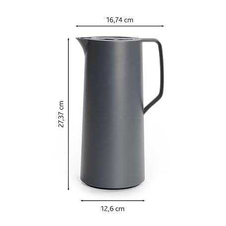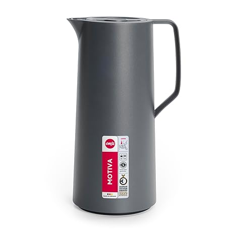 Thông tin sản phẩm Emsa N41701 Motiva Thermal Jug, 1 Litre, Quick Press Closure, 12 Hours Hot, 24 Hours Cold, Glass Flask, Made in Germany, Nordic Design, Anthracite