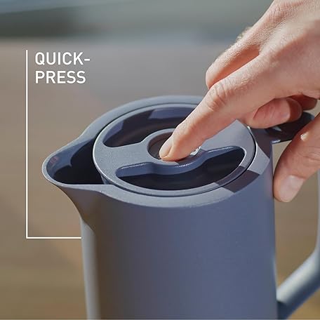 Thông tin sản phẩm Emsa N41703 Motiva Thermal Jug, 1 Litre, Quick Press Closure, 12 Hours Hot, 24 Hours Cold, Glass Flask, Made in Germany, Nordic Design, Northern Blue