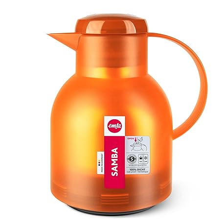Sản phẩm Emsa Samba 504234 Insulated Jug, 1 Litre, Quick Press Closure, 100% Leak-Proof, 12 Hours Hot, 24 Hours Cold – Translucent Orange đang được bán với giá ưu đãi là $19.7399 tại nước Đức.