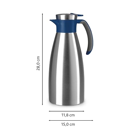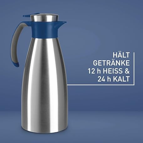 Sản phẩm Emsa Soft Grip Insulated Jug, 1.5 Litres, Stainless Steel, 12 Hours Hot + 24 Hours Cold, Leak-Proof, Non-Slip Handle, Blue N4120400 đang được bán với giá ưu đãi là $41.8124 tại nước Đức.
