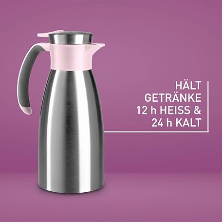 Sản phẩm Emsa Soft Grip Isolierkanne, 1 Liter, Edelstahl, 12 Stunden heiß + 24 Stunden kalt, Auslaufsicher, Rutschfester Griff, Farbe Puderrosa, N4120300 đang được bán với giá ưu đãi là $34.1061 tại nước Đức.