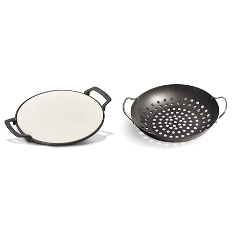 Enders® SWITCH GRID Pizzastein, Halter aus Gusseisen, für Enders® Gasgrill mit Rost-in-Rost System, 7790 & GEMÜSEPFANNE Grill-Zubehör 8790, BBQ Gourmet, für Gemüse, Salat, Fisch, Pfanne, beschichtet